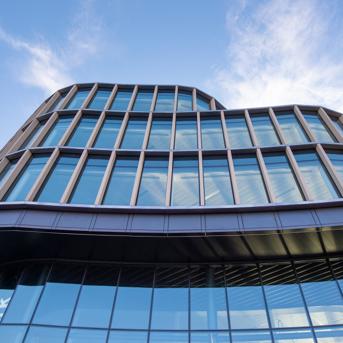The façade comprises a Wicona structural glazing (SG) system, incorporating acoustic barriers and a bespoke package of Speedpanel A2 insulated spandrel panels to deliver a fully tested, high-performance building envelope.